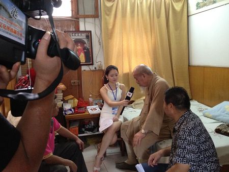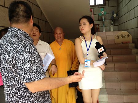 记者现场采访释慈模住持